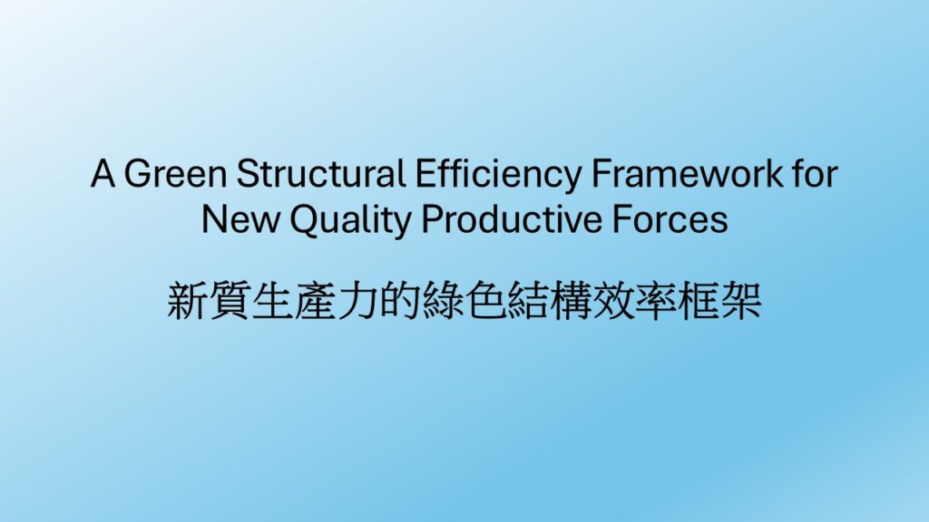 The project team is pleased to announce the launch of a new research project titled “A Green Structural Efficiency Framework for New Quality Productive Forces”, scheduled for 2026-2027. This project is supported by the Faculty Development Scheme (FDS) of the Research Grants Council (RGC) of HKSAR. The aim is to establish a green structural efficiency framework that can be used to evaluate the achievement of New Quality Productive Forces.